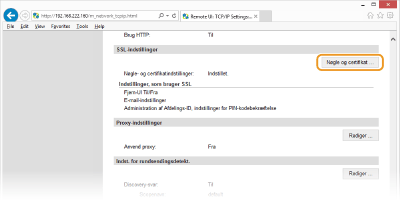 Klik på [Nøgle og certifikat ...] i [TLS-indstillinger].