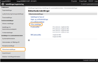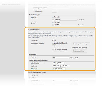 Angiv indstillingerne [Gyldig til:], og [Autentificering:]/[Kryptering:]/[DH-gruppe:].
