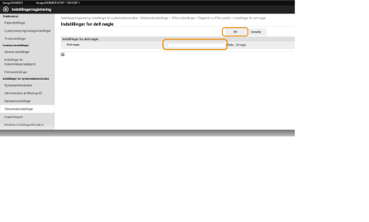 Angiv op til 24 alfanumeriske tegn for den forhåndsdelte nøgle, og klik på [OK].