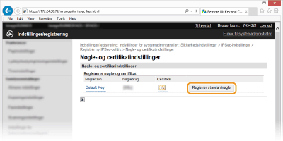 Klik på [Registrer standardnøgle] til højre for et nøglepar, du vil bruge.