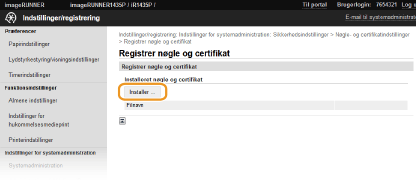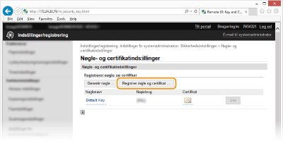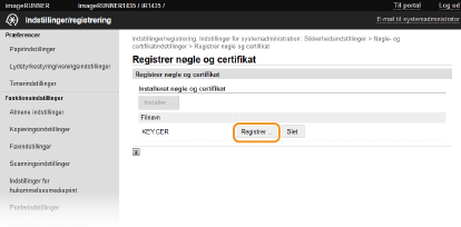 Klik på [Registrer nøgle og certifikat] eller [Registrer CA-certifikat].