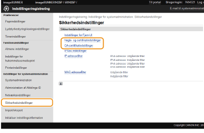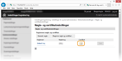 [Nøgle- og certifikatindstillinger] (for nøglepar) eller [CA-certifikatindstillinger] (for CA-certifikater).