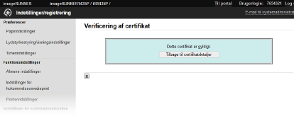 Oplysningerne om certifikatet kan vises på denne skærm.