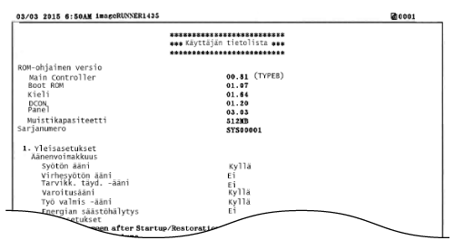 Tämä lista ei sisällä asetustietoja kohdista <Verkkoasetukset> ja <Järjestelmän hallinta-asetukset>. Tarkistaaksesi kaikki asetusnimikkeet, tulosta Järjestelmänvalvojan tietolista.