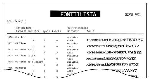 Voit tulostaa listan kirjasintyypeistä jotka ovat käytettävissä PCL-tilassa.