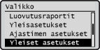 Asteriskilla (*) merkityt asetukset ovat käytettävissä vain, kun lisävarusteena saatava paperikasetti (kasetti 2) on asennettu.