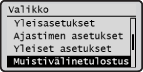 Asteriskit (*)Asteriskilla (*) merkityt asetukset ovat käytettävissä vain, kun lisävarusteena saatava paperikasetti (kasetti 2) on asennettu.