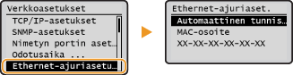 Kun laite kytketään keskittimeen tai siltaan, yhteyden muodostus saattaa epäonnistua, vaikka IP-osoite on määritetty oikein. Tämän ongelman voi ratkaista asettamalla ajan, jonka laite odottaa ennen tiedonsiirron aloittamista. Verkkoon yhdistämisen odotusajan asettaminen