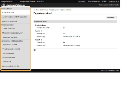 Voit muuttaa asetuksia kohdassa [Järjestelmän hallinta-asetukset] vain, kun olet kirjautunut järjestelmänvalvojan tilassa.
