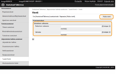 Määritä vietyjen asetustietojen tallennuspaikka näytön ohjeiden mukaisesti.