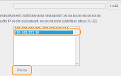 Valitse IP-osoite ja sitten [Poista]. ![]() |