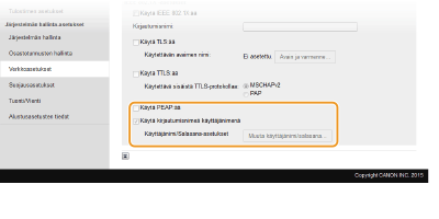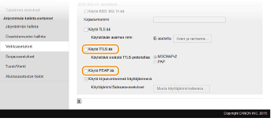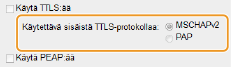 Valitse [Käytä TTLS:ää]- tai [Käytä PEAP:ää] -valintaruutu.