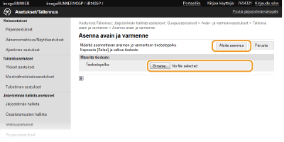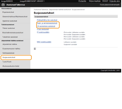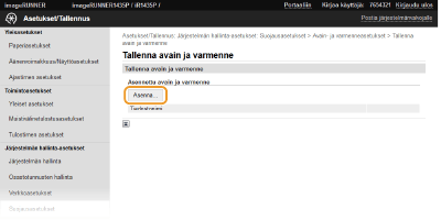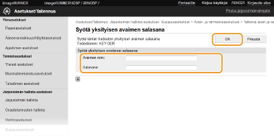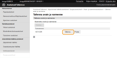 [Avain- ja varmenneasetukset] (avainpareille) tai [CA-varmenteen asetukset] (CA-varmenteille).