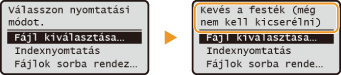 <Kevés>: A festék kifogyóban van. Gondoskodjon csere festékkazettáról.