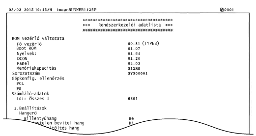 A beállításokat tartalmazó menü) és a készülék érvényben lévő beállításait, pl. papírméret és papírtípus. Ellenőrizheti a <Hálózati beállítások> és <Rendszerkezelő beállítások> értékeit is, mint a Felhasználói adatlista részét (