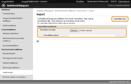 Adja meg az importálás beállításait, majd kattintson az [Importálás indul] gombra.