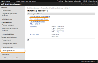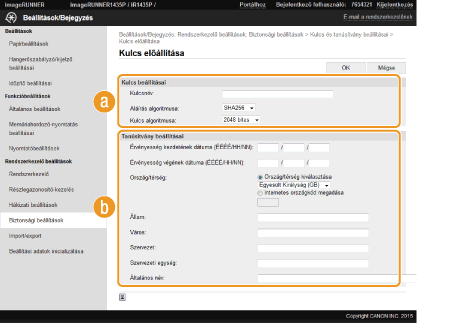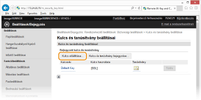Ha a TLS (Transport Layer Security) megoldáson keresztül folytatott titkosított kommunikációhoz kulcspárra van szükség, akkor az előállítható a készülékkel. A TLS-protokollt a készülék Távoli felhasználói felületen keresztüli elérésekor használhatja. A készülékre legfeljebb öt kulcspár jegyezhető be.