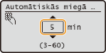 . Varat arī izmantot iestatījumu <Automātiskās miegā pāriešanas laiks>, lai iekārtā automātiski aktivizētu miega režīmu, ja tā ir dīkstāvē noteiktu laika periodu.