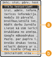 Iestatījumu izvēlnes saraksts). Lai pabeigtu dažu iestatījumu inicializāciju, nepieciešama iekārtas restartēšana.