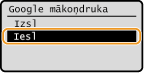 Ja vēlaties atspējot funkciju Google Mākoņdruka, atlasiet <Izsl.>.