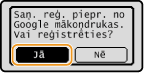 Ierīci var reģistrēt arī no mobilas ierīces vai Google Chrome*. Pirms reģistrācijas beigām ierīces displejā tiek parādīts tālāk norādītais apstiprinājuma ekrāns. Nospiediet <Jā>, lai pabeigtu reģistrāciju.