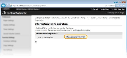 Noklikšķiniet uz vietrāža URL saites, kas redzama sadaļā [URL for Registration:].