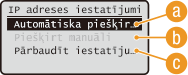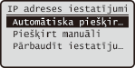 ![]() Ja tiek parādīta vērtība <Iesl.>, izvēlieties <Automātiska piešķire>