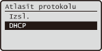 Ja nevēlaties izmantot DHCP, lai piešķirtu IP adresi Izvēlieties <Izsl.>. Ja izvēlaties <DHCP>, bet DHCP pakalpojums nav pieejams, iekārta meklē, vai pakalpojumi tiek piedāvāti tīklā, un rodas nevajadzīgi sakari. |