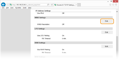 Noklikšķiniet uz [Edit...], kas atrodas sadaļā [WINS Settings].