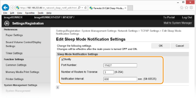 Atzīmējiet šo izvēles rūtiņu, lai informētu ierīču pārvaldības programmatūru par iekārtas enerģijas statusu. Ja ir atzīmēta izvēles rūtiņa [Notify], iekārta neveiks nevajadzīgu saziņu miega režīmā un samazinās kopējo enerģijas patēriņu. [Port Number:]