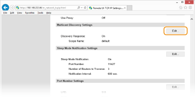 Noklikšķiniet uz [Edit...], kas atrodas sadaļā [Multicast Discovery Settings].