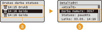 .![]() <Drukas darba statuss>Tiek parādīts to dokumentu saraksts, kas tiek apstrādāti, kopēti vai arī gaida apstrādi.