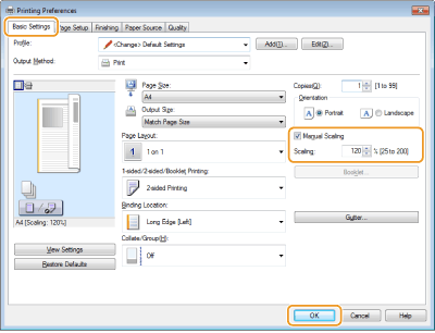 ievadiet drukāšanas mērogu sadaļā [Scaling] (Mērogošana)