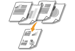 Vairākas lappuses varat drukāt uz vienas lapas. Piemēram, varat drukāt četras vai deviņas lappuses uz vienas lapas, izmantojot iestatījumu [4 on 1] (Četras vienā) vai [9 on 1] (Deviņas vienā). Izmantojiet šo funkciju, ja vēlaties taupīt papīru vai skatīt dokumenta sīktēlus.