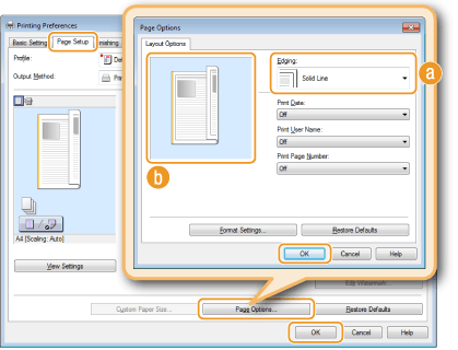 Cilne [Page Setup] (Lappuses iestatījumi) Noklikšķiniet uz [Page Options] (Lappuses iespējas) Izvēlieties apmales veidu sadaļā [Edging] (Malas) [OK] (Labi)  [OK] (Labi)