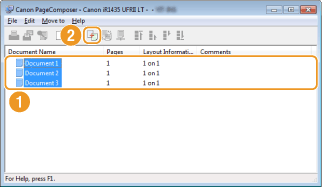 Dokumenti tiek pievienoti programmā Canon PageComposer.