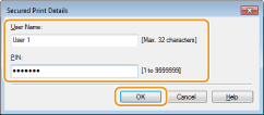 Pārbaudiet dokumenta nosaukumu, lietotājvārdu un PIN un noklikšķiniet uz [OK] (Labi).