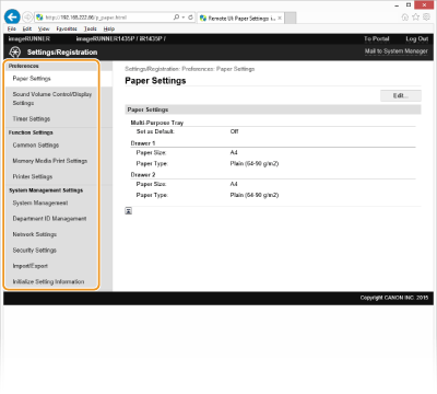 Iestatījumus sadaļā [System Management Settings] varat norādīt tikai tad, ja piesakāties sistēmas pārvaldnieka režīmā.