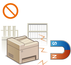 Neuzstādiet vietās, kur var rasties kondensātsJa telpa, kurā ir uzstādīta iekārta, tiek reti vēdināta, kā arī, ja tā tiek pārvietota no aukstas vai sausas vietas uz karstu vai mitru vietu, iekārtā var veidoties ūdens pilieni (kondensāts). Ja iekārta tiek lietota šādos apstākļos, tas var izraisīt papīra iestrēgšanu, sliktu drukas kvalitāti vai sabojāt iekārtu. Pirms lietošanas vismaz 2 stundas ļaujiet tai pielāgoties apkārtējai temperatūrai un mitrumam.