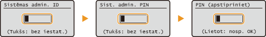 Norādiet <Sistēmas admin. ID> un pēc tam <Sist. admin. PIN>.