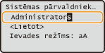 Sistēmas administratora laukā ievadiet, maks., 32 rakstzīmes, izvēlieties <Lietot> un nospiediet  . Teksta ievade
