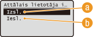 Izvēlieties <Izsl.> un nospiediet