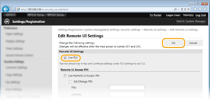 Noklikšķiniet uz [Security Settings]  [Remote UI Settings].