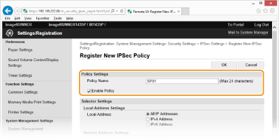 Atzīmējiet izvēles rūtiņu [Enable Policy].