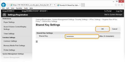 Kā sākotnēji kopīgotu atslēgu ievadiet, maks., 24 burtciparus un noklikšķiniet uz [OK].