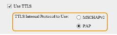 Atzīmējiet izvēles rūtiņu [Use TTLS] vai [Use PEAP].