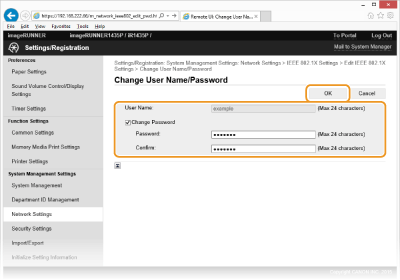 Iestatiet lietotājvārdu/paroli un noklikšķiniet uz [OK].