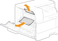 Ar spēku velkot papīru, var sabojāt iekārtas daļas. Ja papīru nevar izņemt, sazinieties ar vietējo Canon pilnvaroto tirgotāju.