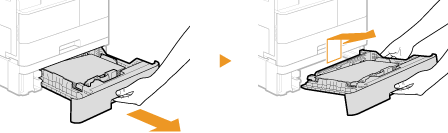 Ceļot priekšpusi, noteikti turiet papīra atvilktni ar abām rokām un noņemiet to uzmanīgi. Pretējā gadījumā varat sabojāt papīra atvilktni, to nometot.