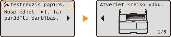 Ja iestrēgst papīrs, ekrānā tiek parādīts ziņojums <Iestrēdzis papīrs.>. Nospiediet